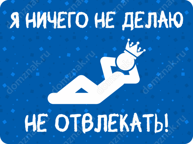 Табличка «Я ничего не делаю, не отвлекать!» изготовлена из пластика ПВХ, толщиной 4 мм. Изображение наносится по технологии УФ-печати. Табличка предназначена для использования как в помещении, так и на улице.